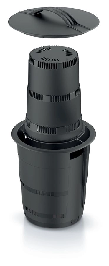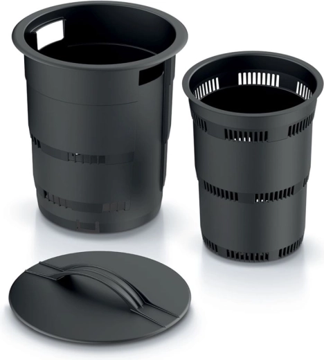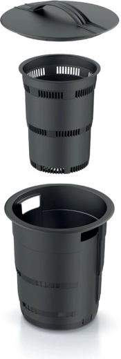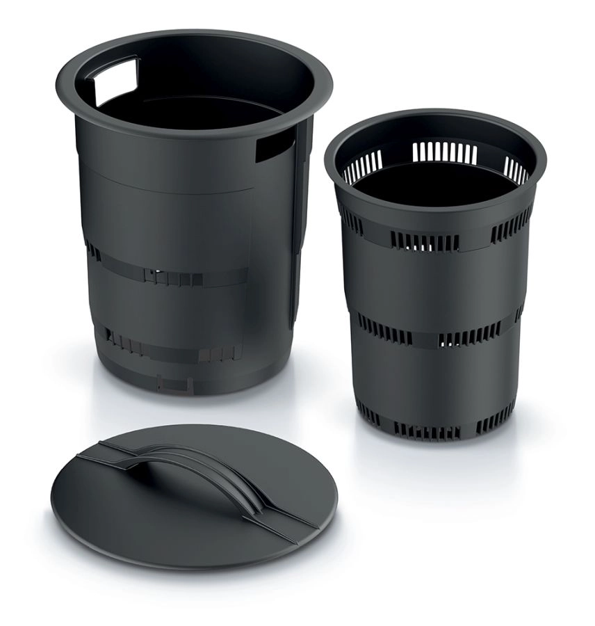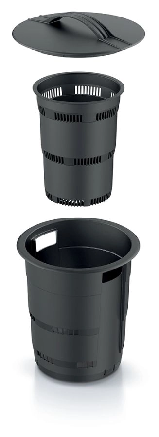 Aftageligt låg med greb giver bekvem adgang. Smid køkkenrester i uden at skulle skille kompostbeholderen ad.