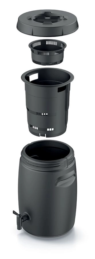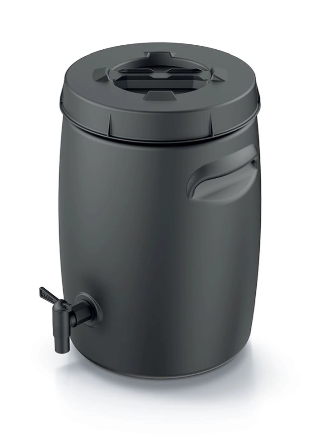 Takket være den gennemtænkte konstruktion med låg, der forhindrer insekter i at komme ind og samtidig sikrer luftudveksling, foregår fermenteringen uden ubehagelige lugte. Den lave vægt og de praktiske mål gør det nemt at placere den i skur, drivhus eller på altan. Det robuste plastmateriale er let at rengøre og tåler daglig brug.