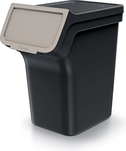 Det frontvendte vippe-låg gør det muligt at smide affald i, også når spandene er stablet, og forbliver åbent for hurtig betjening.