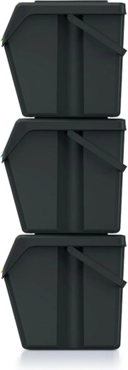 - Pladsbesparende: modulopbygget design til stabil stabling (3 spande oven på hinanden).