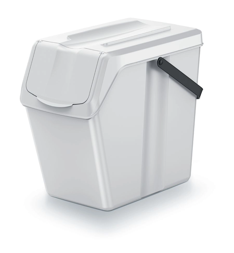 Den robuste plast sikrer lang holdbarhed og enkel vedligeholdelse – overfladen skal blot aftørres med en fugtig klud. Den neutrale askgrå farve passer til de fleste interiører, mens de medfølgende farvede etiketter hjælper med tydeligt at angive affaldstypen og holde sorteringssystemet overskueligt.