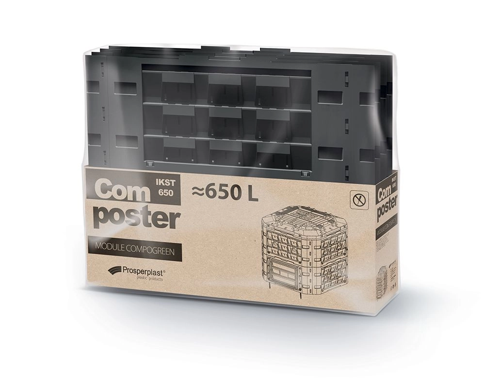 Komposteren Compogreen Vario med et volumen på 650 liter er designet til effektiv kompostering af både køkken- og haveaffald. Det modulære system muliggør hurtig samling uden brug af værktøj, toplåget med stor fyldeåbning gør arbejdet hurtigere og er sikret mod utilsigtet åbning fra vind eller dyr. To nederste udtrækslåger gør det nemt løbende at tage moden kompost ud.
