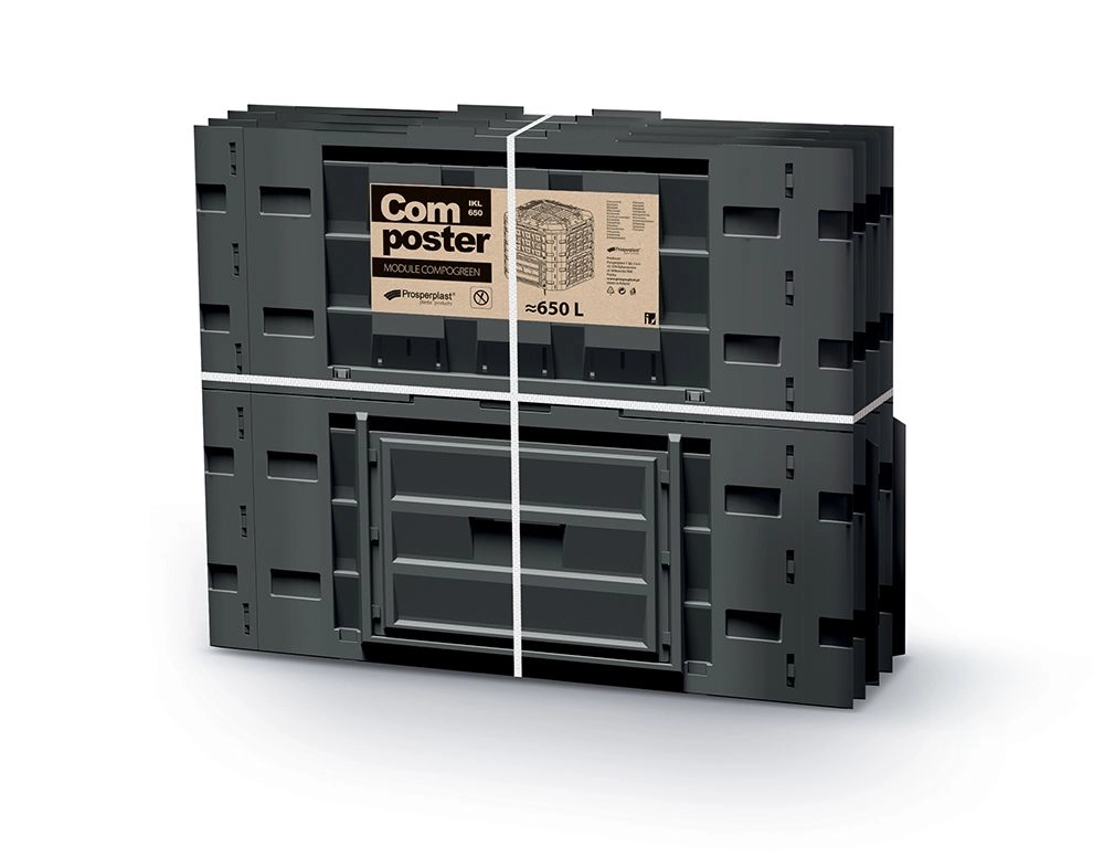 Den storvolumøse COMPOGREEN VARIO kompostbeholder med en kapacitet på 650 l er ideel til effektiv håndtering af både have- og køkkenaffald. Den tilbyder hurtig kompostering, en robust plastkonstruktion og praktisk påfyldning fra toppen samt bundlåger for nem udtagning af kompost. Takket være ventilationspaneler sikres korrekt luftcirkulation og hurtigere nedbrydning af organisk materiale.