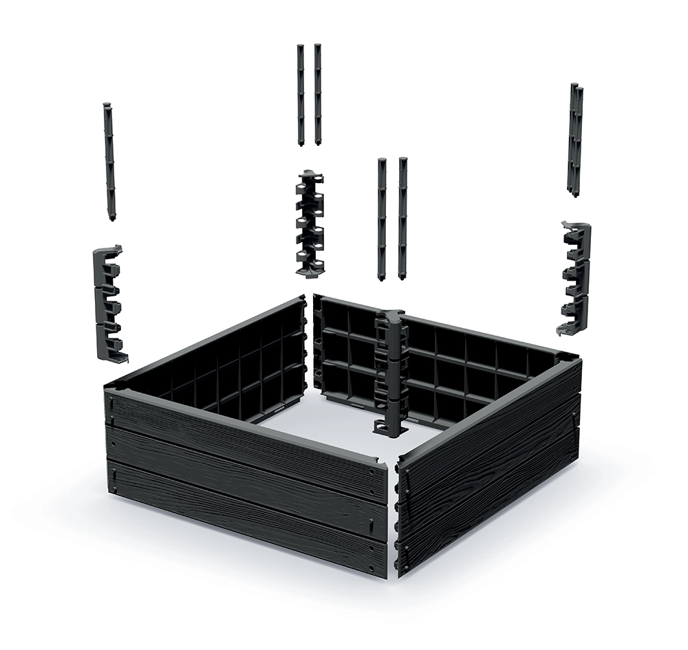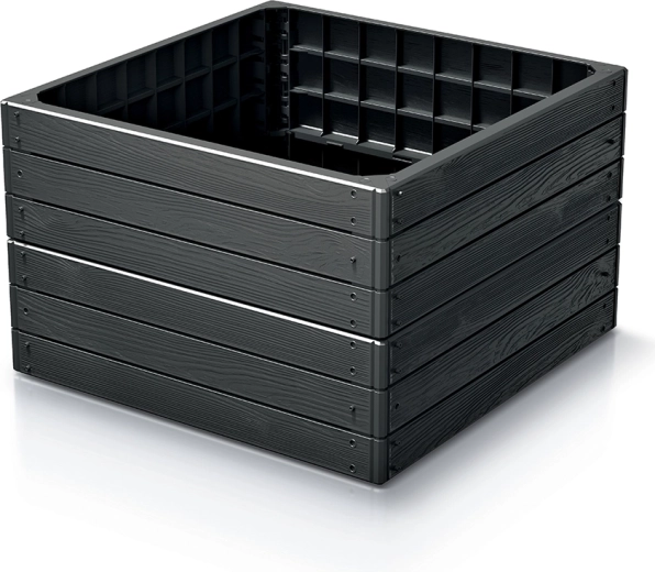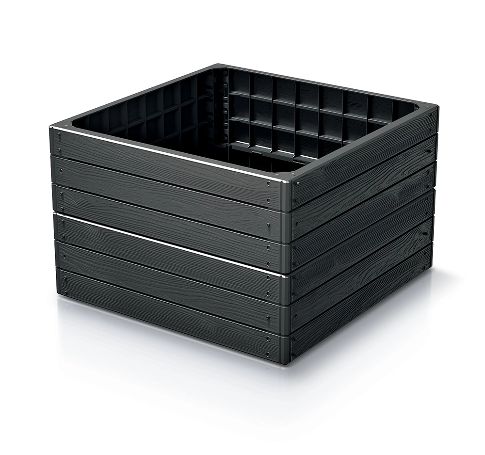 Den bundløse konstruktion forbedrer planternes sundhed – rødderne kan vokse ned i underlaget, og overskydende vand drænes naturligt. Takket være den stabelbare løsning kan du nemt øge højden på bedet, skåne ryggen og tilpasse det til forskellige typer beplantning.