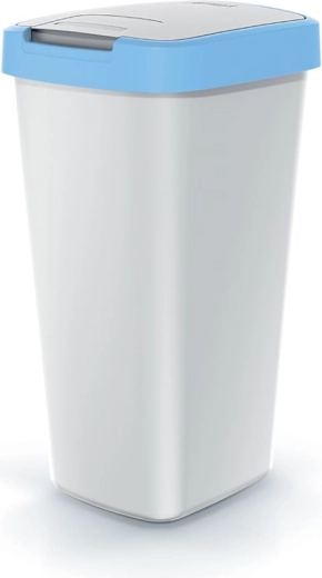 Affaldsspanden på 25 l kombinerer moderne look, funktionalitet og holdbarhed. Det askefarvede korpus med lyseblåt låg virker elegant og hjælper samtidig med hurtig adskillelse af affald. Takket være to åbningsmetoder kan du tilpasse brugen præcis efter dine vaner.