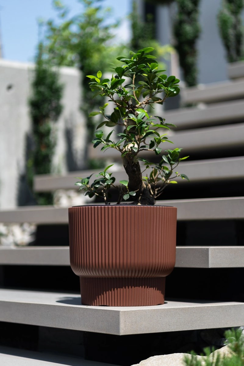 Vertikale riller og en elegant cylindrisk form skaber et tidløst udtryk, der gør sig bemærket ved indgangen, på terrassen og i stuen.