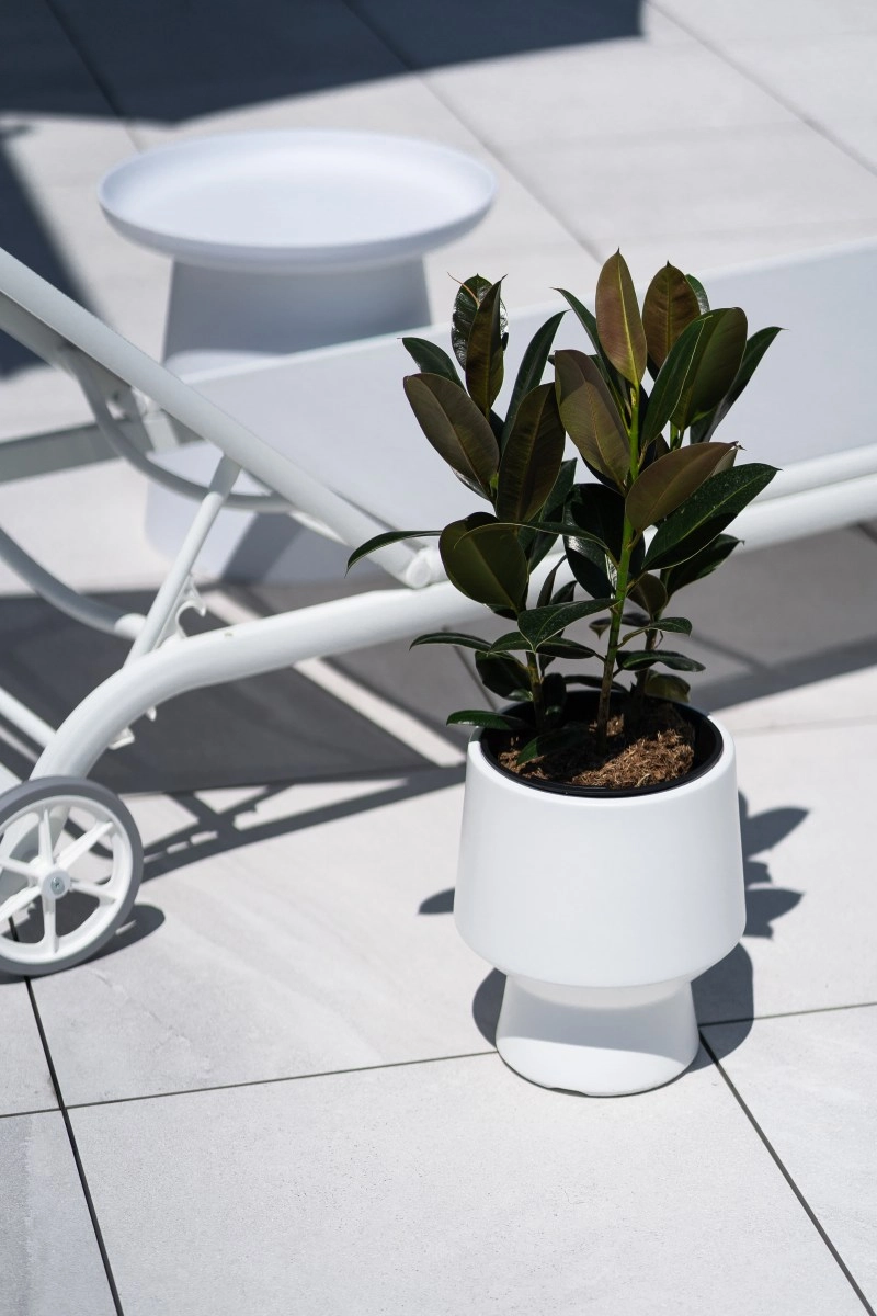 Frostbestandig, UV-stabil og robust plast tåler vejr og daglig slitage, så krukken forbliver smuk i årevis.
