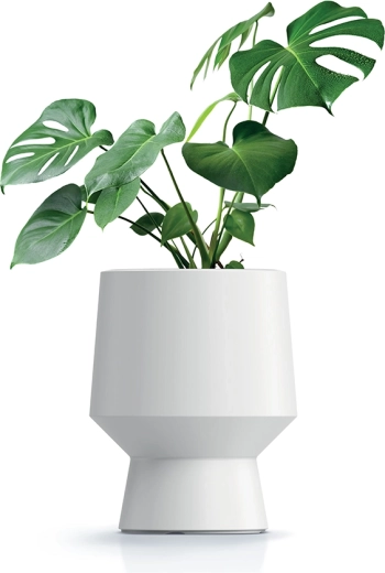 Denne designkrukke med glat overflade og atypisk form passer perfekt til moderne interiører og udendørsarealer. Den integrerede indsats sikrer stabil fugt i substratet ved at akkumulere vand under jorden og muliggør samtidig sikker afledning af overskud, så risikoen for overvanding af rødder minimeres.