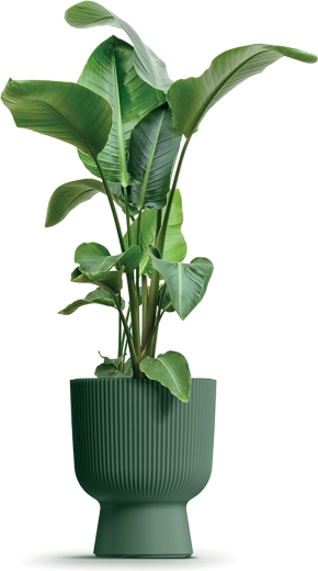Denne moderne urtepotteskjuler i mørkegrøn nuance kombinerer tidløst udseende med maksimal funktionalitet. Den cylindriske form, der tilspidses mod bunden, sikrer stabilitet og et rent design, som passer perfekt både inde og ude. Den riflede overflade tilfører en original tekstur og mindsker synligheden af snavs.