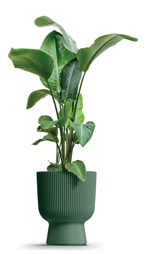 Vertikale riller og en udvidet base giver Milly-urtepotten et moderne look og stabilitet. Perfekt til at fremvise planter på gulv og bord.