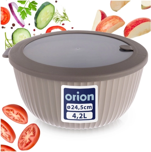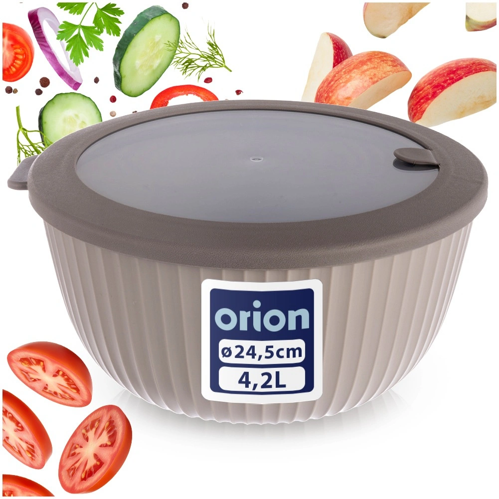 Praktisk køkkenskål med volumen 4 l og en diameter på ca. 24,5 cm er ideel til omrøring, hævning af dej, servering af salater samt opbevaring og opvarmning af mad. Den har et transparent låg med tætningsindsats og dampåbning til mikroovn, er BPA-fri, tåler temperaturer fra -25 °C til +95 °C og kan gå i opvaskemaskinen.