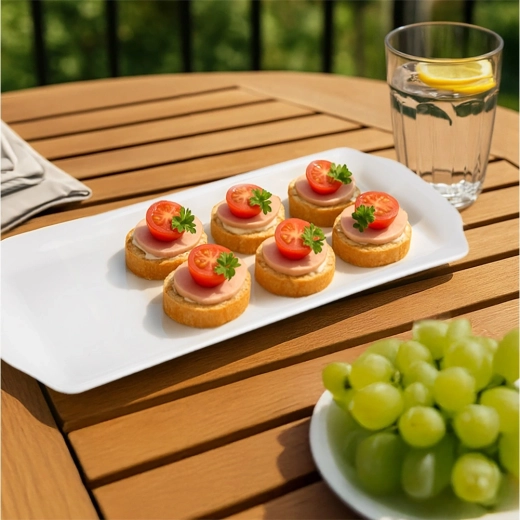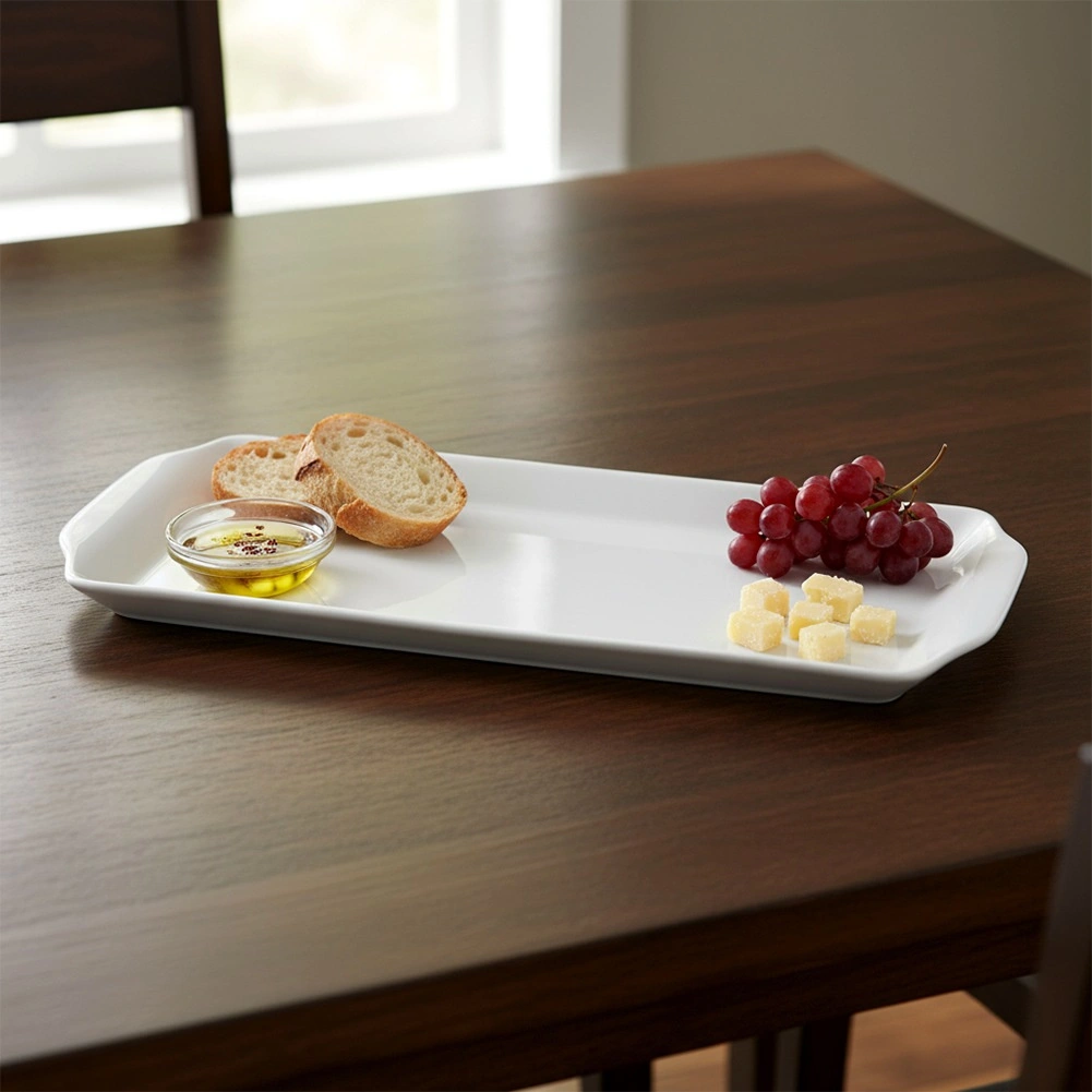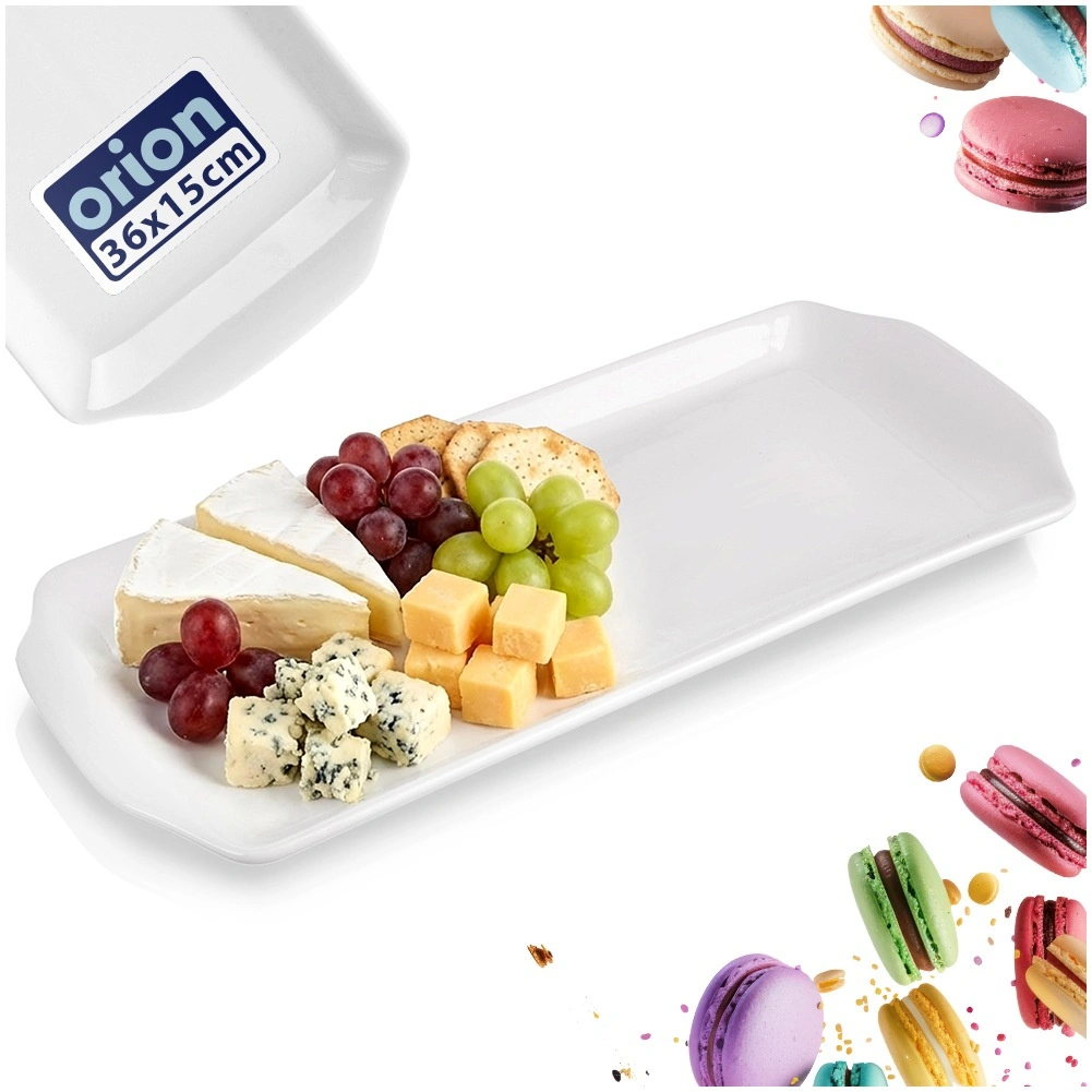 Elegant serveringsfad i kvalitetsporcelæn i hvid til stilfuld servering af forretter, oste, desserter eller tapas. Med målene 36 × 15,5 × 2,3 cm tilbyder det rigelig plads, og dets minimalistiske design passer til ethvert bord – både til hverdag og festlige lejligheder. Holdbart porcelæn, moderne udseende, tåler opvaskemaskine og mikrobølgeovn.