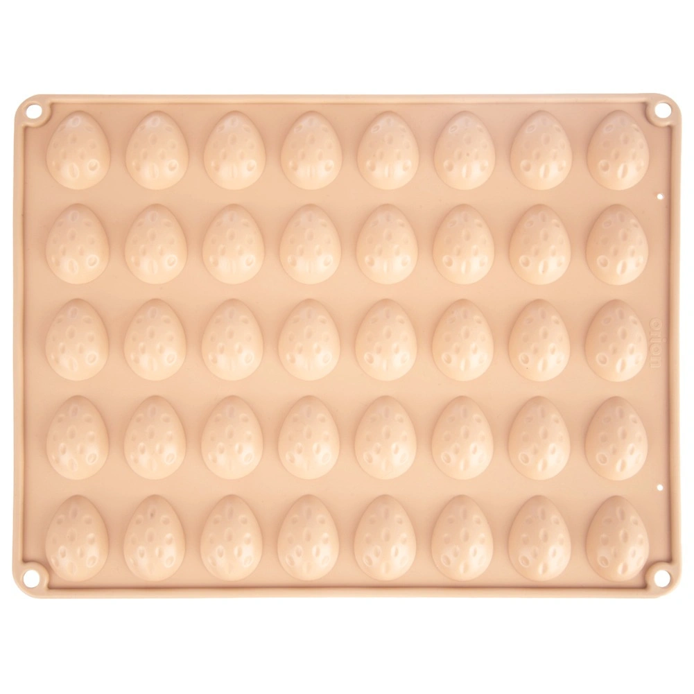 Oplev en alsidig silikoneform, som gør det nemt at lave hjemmelavede chokolader, praliner og minis-måkager i ægeform. Ét bagepladefelt rummer 40 hulrum på ca. 4 × 3 cm, så du nemt kan forberede en stor portion på én gang. Materialet er non-stick og fleksibelt – færdige stykker poppes let ud uden at knække og uden at skulle smøres eller drysses med mel.