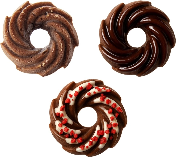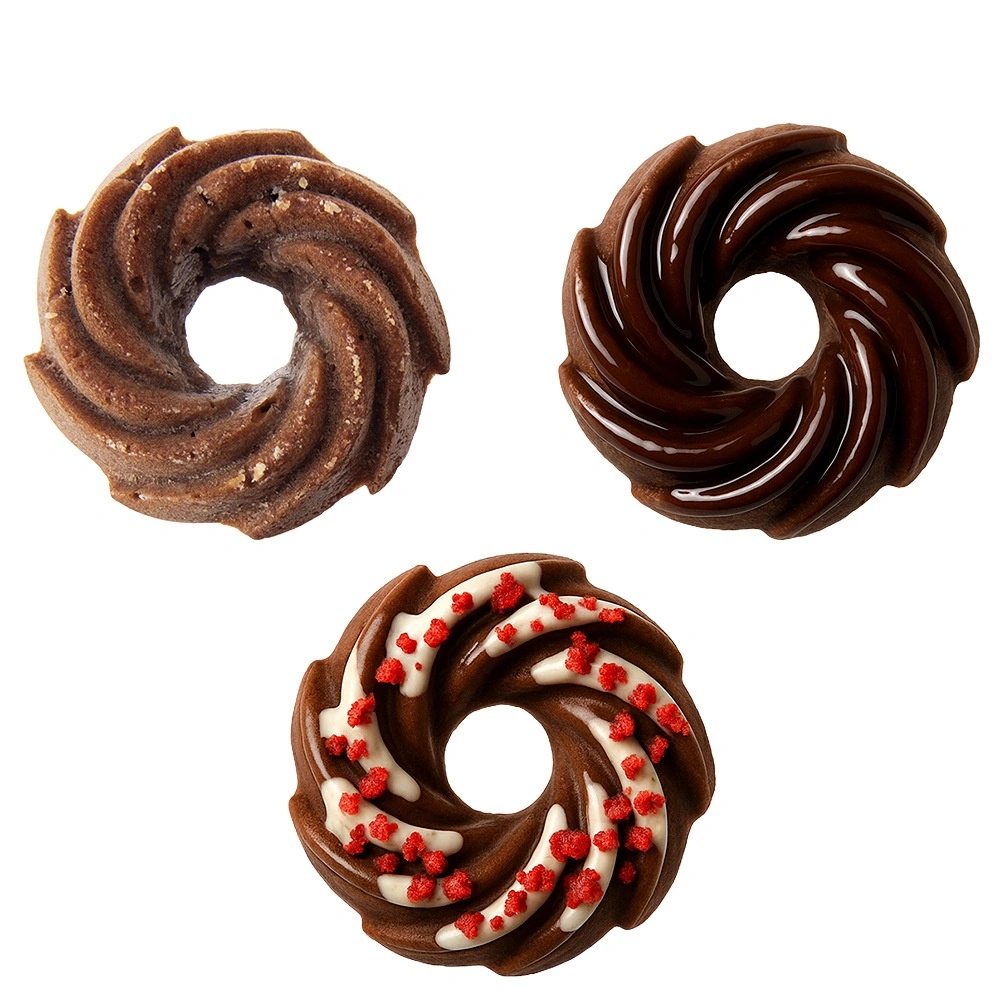 Hver form har et centralt fremspring, som sikrer bedre varmecirkulation og en attraktiv kranseform. Ideel til muffins, mini-kager og donuts.