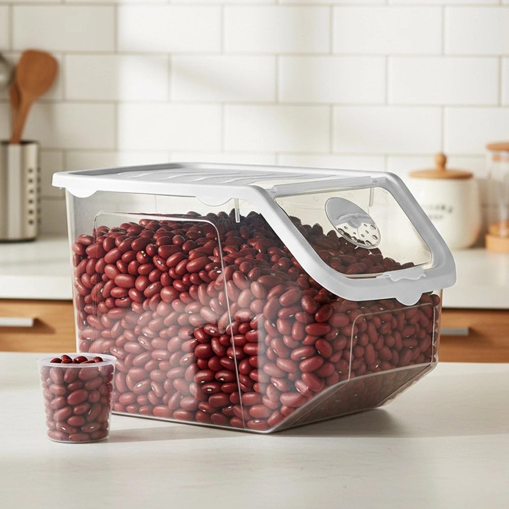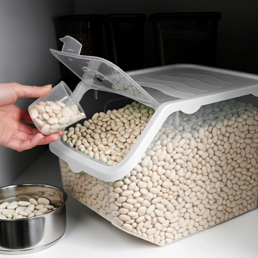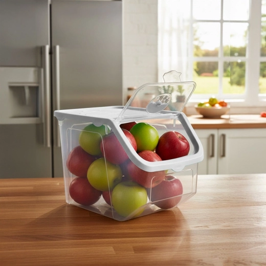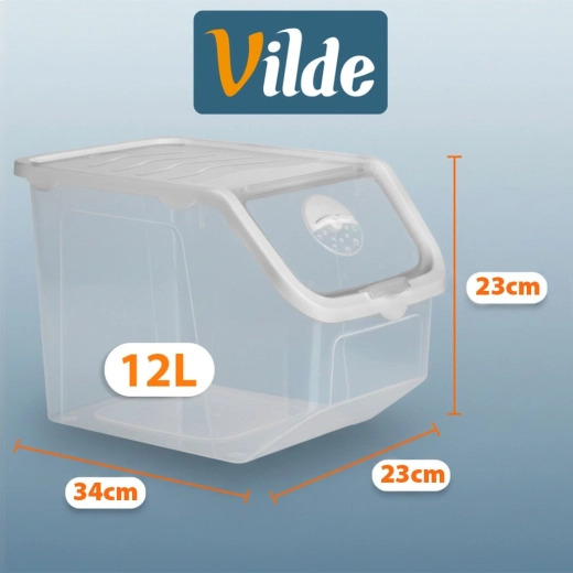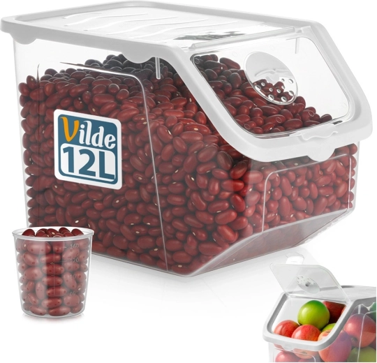 Denne gennemsigtige beholder med en kapacitet på 12 liter er ideel til overskuelig og ren opbevaring af løg, kartofler, hvidløg, frugt samt dyrefoder eller pulvere. Klik-åbnende klap gør den nem i daglig brug – du kan hurtigt fylde op eller tage præcis den mængde, du har brug for.