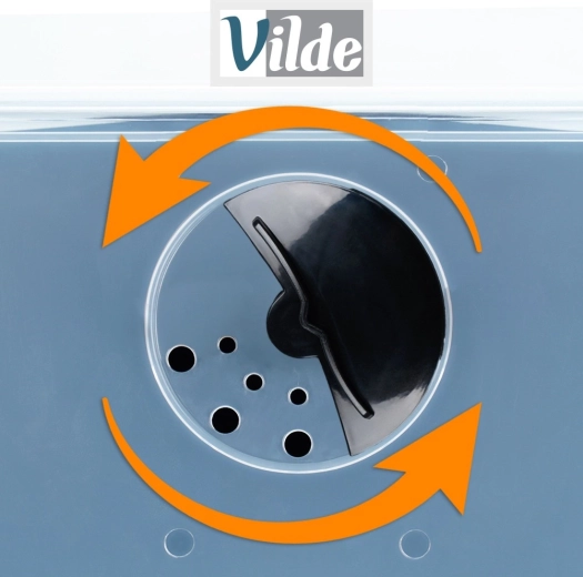 Den gennemsigtige frontklap med roterende udløb gør det nemt at tage af og tjekke beholdningen uden at skulle åbne hele låget.