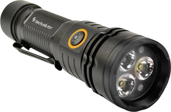 Kompakt og kraftig lommelygte TECHNIK MT-P27 leverer op til 1500 lm og en rækkevidde på 150 m. Takket være det robuste aluminiumshus, IP44-klassificering, det praktiske sidemonterede knap og en nyttig clips er den ideel til daglig såvel som professionel brug. Opladning sker hurtigt via USB‑C, og det udskiftelige 18650‑batteri (2200 mAh) sikrer op til 8 timers drift.