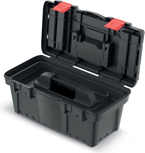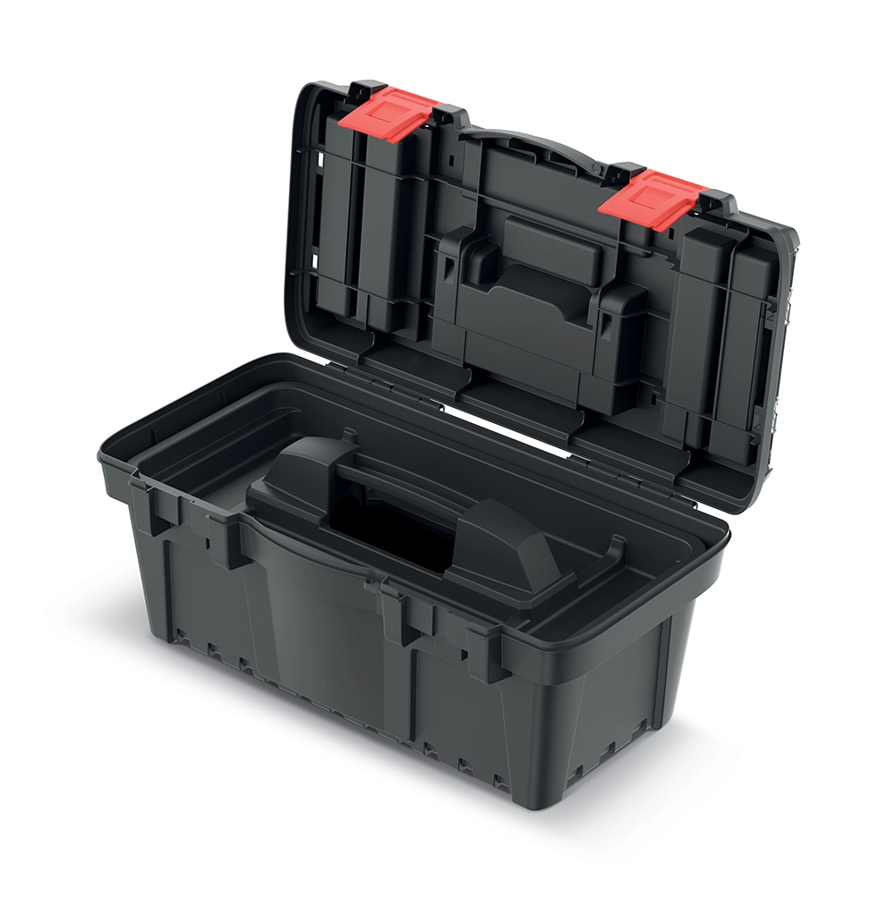 Gennemtænkte detaljer som rum i låget og beholdere til smådele sparer både tid og plads. Det ergonomiske ABS-håndtag ligger godt i hånden og gør transporten nemmere, mens de stærke plastlåse holder indholdet sikkert under håndtering og transport.