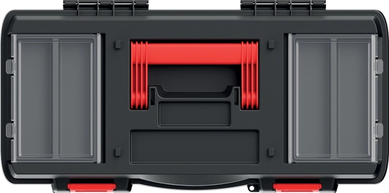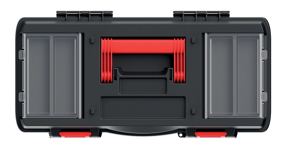 Værktøjskassen PROSPERPLAST DARK 55 er designet til daglig brug i værkstedet og på farten. Takket være det robuste kabinet af en polymerblanding med øget styrke modstår den stød og langvarig belastning. Et overskueligt layout sikres af to gennemsigtige organisere i låget, som giver hurtig adgang til skruer, rawlplugs og andre småting uden at du behøver at åbne hele kassen.