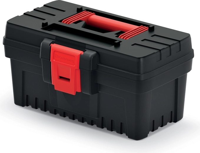 Kistenberg Dark 30 er en pålidelig værktøjskasse designet til daglig brug. Den holdbare polymersammensætning beskytter indholdet mod stød og slitage, mens det ergonomiske ABS-håndtag sikrer behagelig og sikker transport. De kompakte mål gør det nemt at opbevare den i værkstedet, bilen og på byggepladsen.