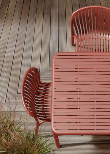 Den stilfulde BRENE-stol er inspireret af ikonisk bøjleformet møbeldesign, men bruger moderne materialer for daglig komfort. Lamelsæde og ryglæn tilpasser sig kroppen, ventilerer effektivt og tørrer hurtigt efter regn. Takket være de universelle linjer passer den naturligt ind i spisestuen, på altanen, i haven og i kommercielle miljøer.