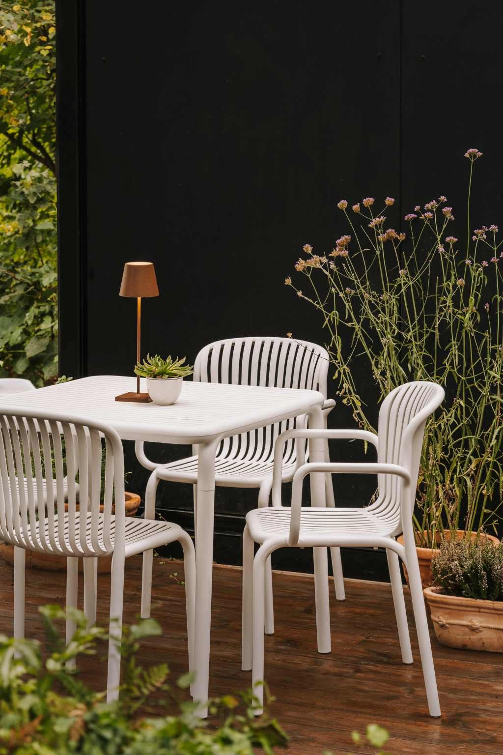 Vægten på 3,85 kg gør håndtering let, og stabling sparer plads ved opbevaring – ideel til terrasser, caféer og hjem.