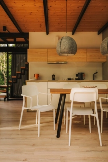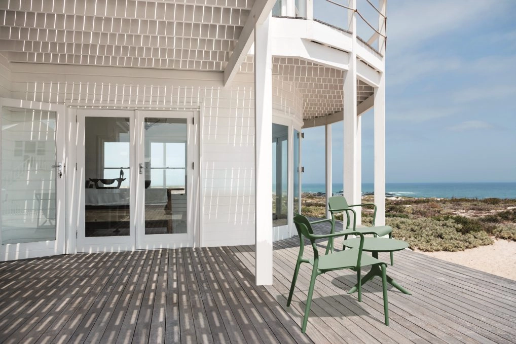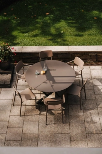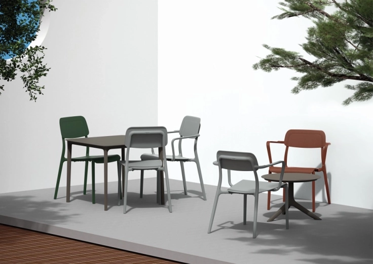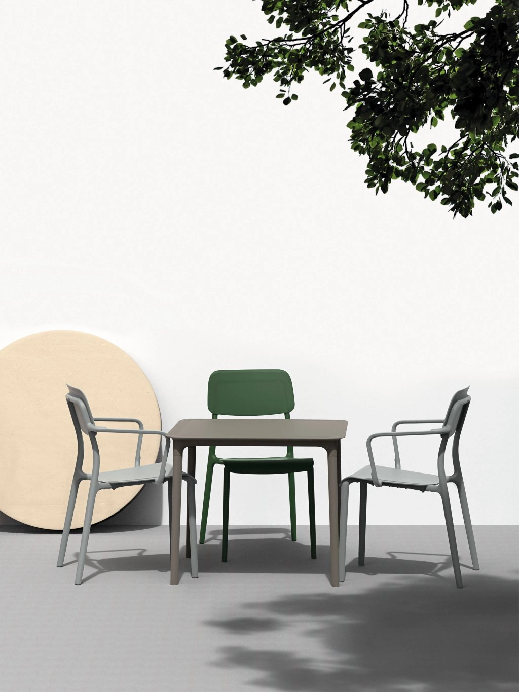 Integrerede armlæn og et ergonomisk formet sæde støtter korrekt kropsholdning og komfort selv ved længere tids siddning – ideel ved bordet og på terrassen.