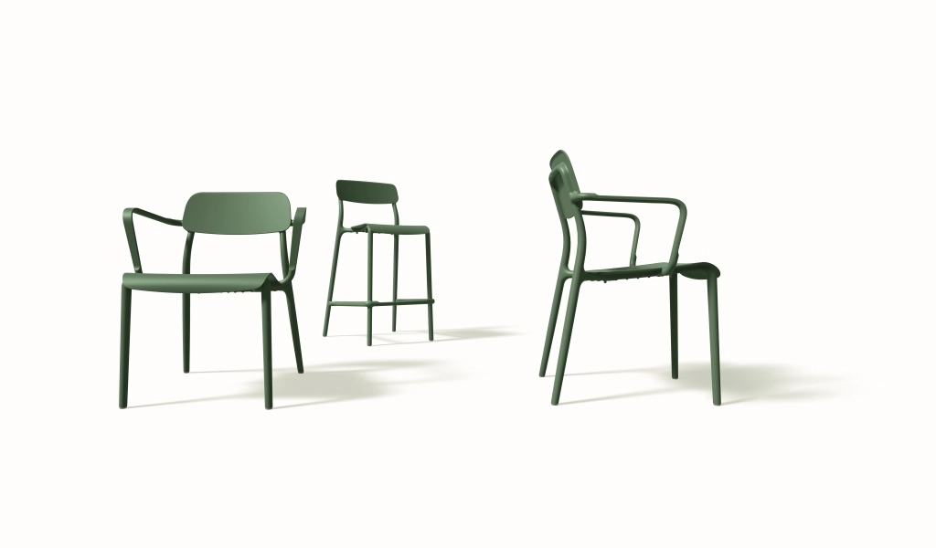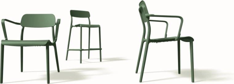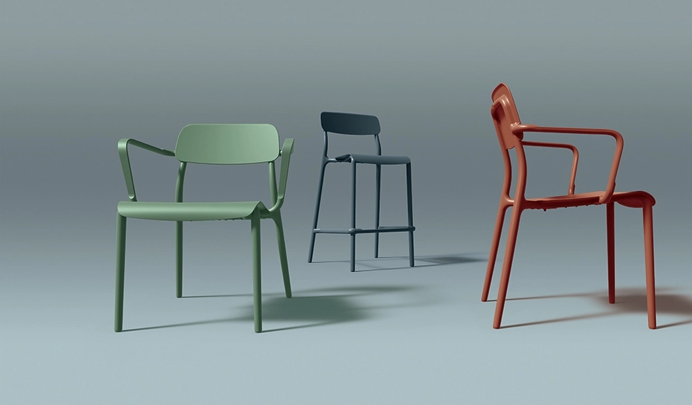 RIMO tager udgangspunkt i æstetikken fra traditionelt bøjet træ-møbelhåndværk og bringer den ind i nutiden med moderne materialer. Bløde former, glatte linjer og ren hvid farve fremhæver en universel stil, der let kan kombineres med forskellige typer borde og miljøer.