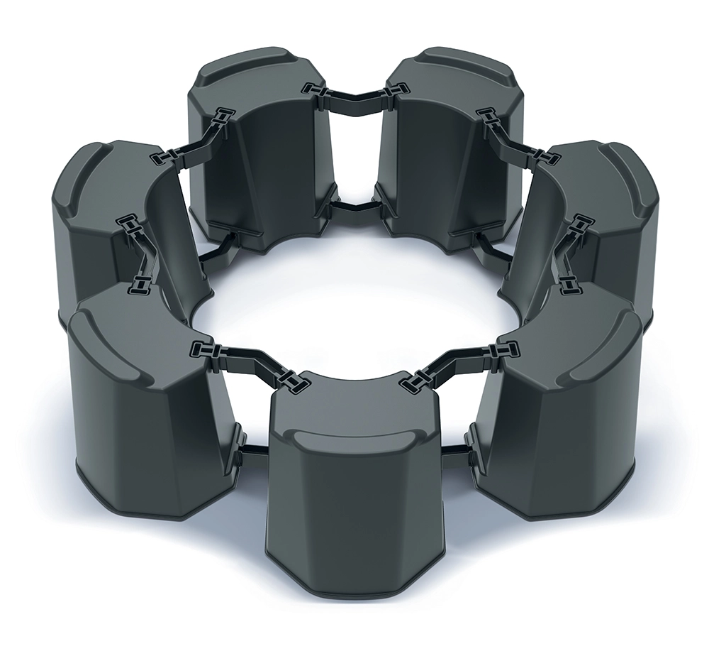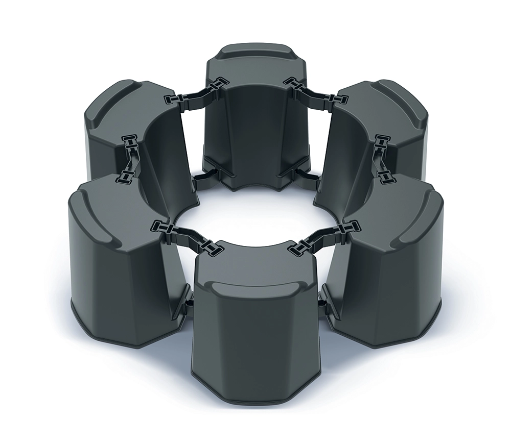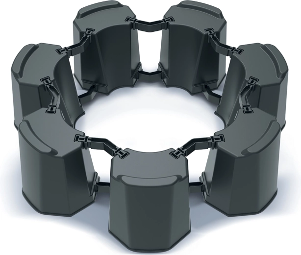 Soklen samles præcist efter behov – af 6 eller 7 segmenter. Så opnår du nemt den ønskede diameter og perfekt stabilitet til din beholder.