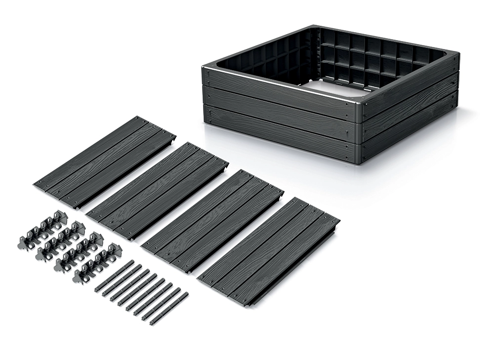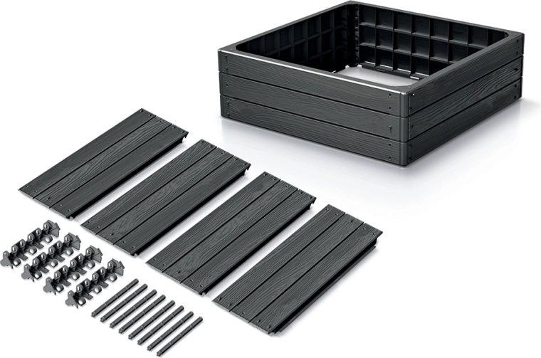 Takket være den lette konstruktion kan bedet nemt flyttes og omarrangeres efter behov. Det modulære design med klikbare sidepaneler muliggør hurtig, stabil og ren installation uden brug af værktøj. Ideelt til dyrkning af grøntsager, krydderurter og blomster i både moderne og naturlige omgivelser.