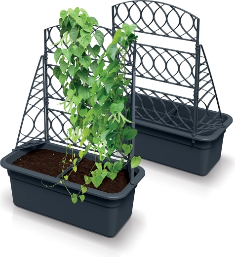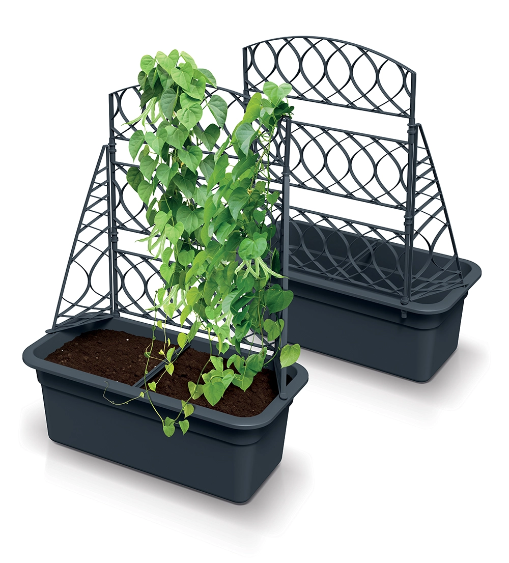 Rektangulær altankasse med espalie sparer plads og komplementerer elegant moderne udendørsområder. Ideel til vertikal dyrkning.