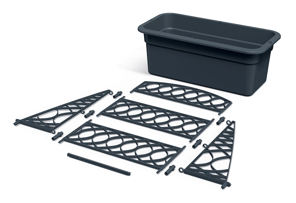 Den stilfulde BLoma blomsterkasse med pergola i antracit kombinerer en rummelig plastkasse med en aftagelig espalie, der giver pålidelig føring af klatreplanter. Takket være det robuste materiale er den egnet til både udendørs og indendørs brug og passer perfekt ind i moderne udemiljøer.
