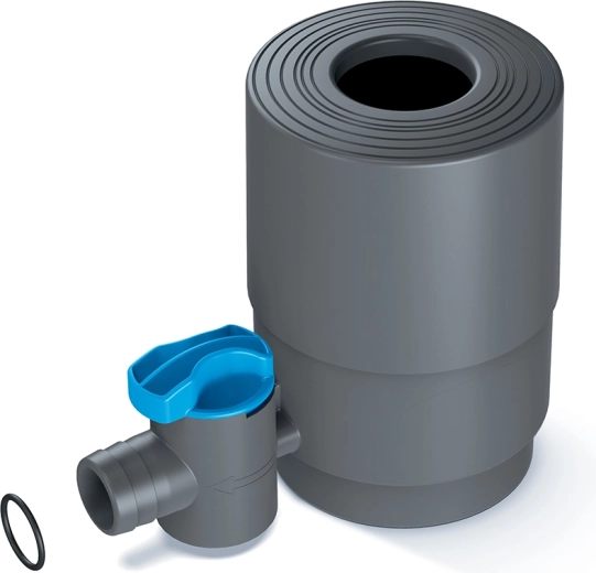 Praktisk sæt til opsamling og regulering af regnvand direkte fra nedløbsrøret. Takket være den justerbare diameter på 68–110 mm passer det til både runde og firkantede nedløb. Et integreret grovfilter opfanger blade og snavs for renere vand i tanken, sommer/vinter-omskifter beskytter systemet mod frost, og overløb med returstrøm forhindrer overløb. Nem montering uden specialværktøj.