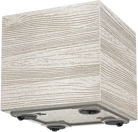 Den teksturerede overflade efterligner troværdigt træ og udnytter samtidig fordelene ved let, stærk plast med UV-beskyttelse for lang levetid både ude og inde.