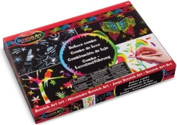 Dette deluxe skrabesæt fra MELISSA & DOUG giver en enkel og fængende måde at skabe originale billeder på. Hvert ark er dækket af et sort lag, under hvilket der gemmer sig regnbuefarver og stærke nuancer. Du skal blot skrabe forsigtigt med den medfølgende pen, så vækkes farverne til live med det samme.