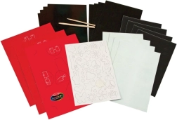 Hvert skrabeark gemmer på regnbue- og holografiske effekter, som ved skrab skaber imponerende og markante billeder uden brug af farver eller lim.