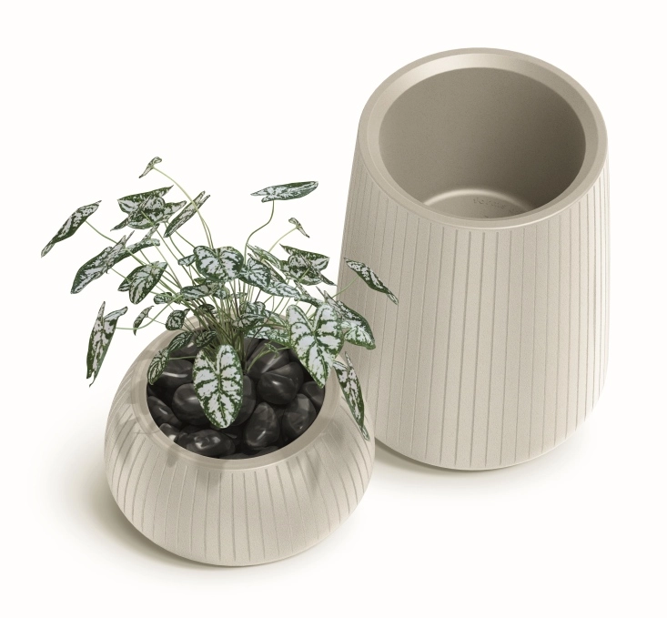 Den stilfulde og alsidige Coro Round passer perfekt ind i både moderne og klassiske omgivelser. Takket være den neutrale sandtone er den nem at kombinere med forskellige materialer og farver – fra træ til sten. Ideel til prydbuske, højere blomster og dekorative græsser.