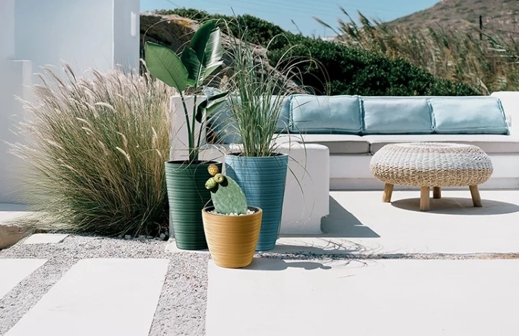 Plast af høj kvalitet er stærk, let og vejrbestandig. Krukken er ideel til terrasser, altaner og haver.
