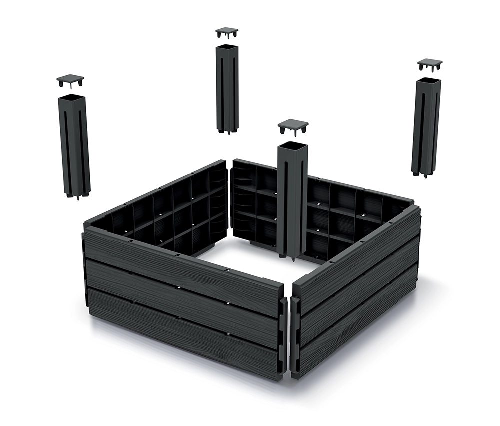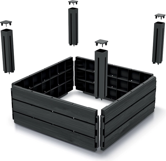 Praktisk højbed i antracit, der gør det nemmere at dyrke grøntsager, krydderurter og blomster i haven, på terrassen eller altanen. Takket være den hævede konstruktion skånes ryggen, det modulære system muliggør nem udvidelse uden værktøj, og den slidstærke plast med beskyttelse mod UV-stråling og vejrpåvirkninger sikrer lang levetid.