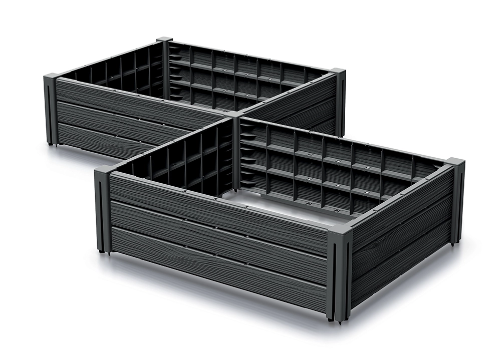 Tilpas højden og layoutet præcist til din plads. Bedene kan stables og udvides for forskellige konfigurationer i have, på terrasse og altan.