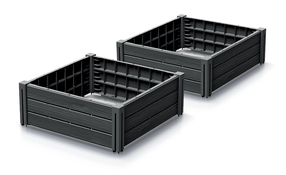 De to separate moduler kan bruges hver for sig eller nemt stables for at opnå en højere profil til dybere rødder eller mere komfortabelt arbejde. Modstandsdygtighed over for vejr og UV-stråling sikrer lang levetid med minimal vedligeholdelse – uanset om du dyrker blomster, grøntsager, krydderurter eller bær.