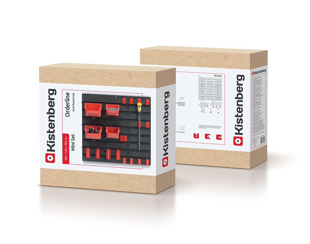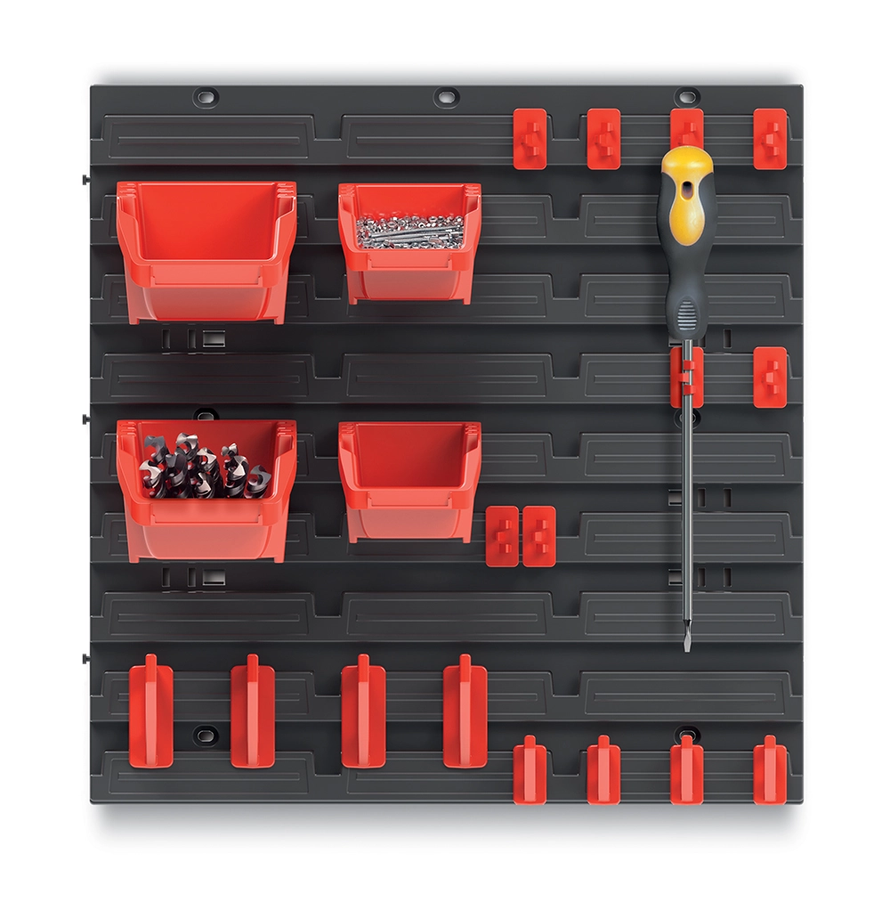Monteringen er hurtig og enkel takket være forberedte huller til fastgørelse på væggen. Organisatoren øger overblikket, effektiviserer arbejdet og mindsker risikoen for at miste værktøj og smådele.