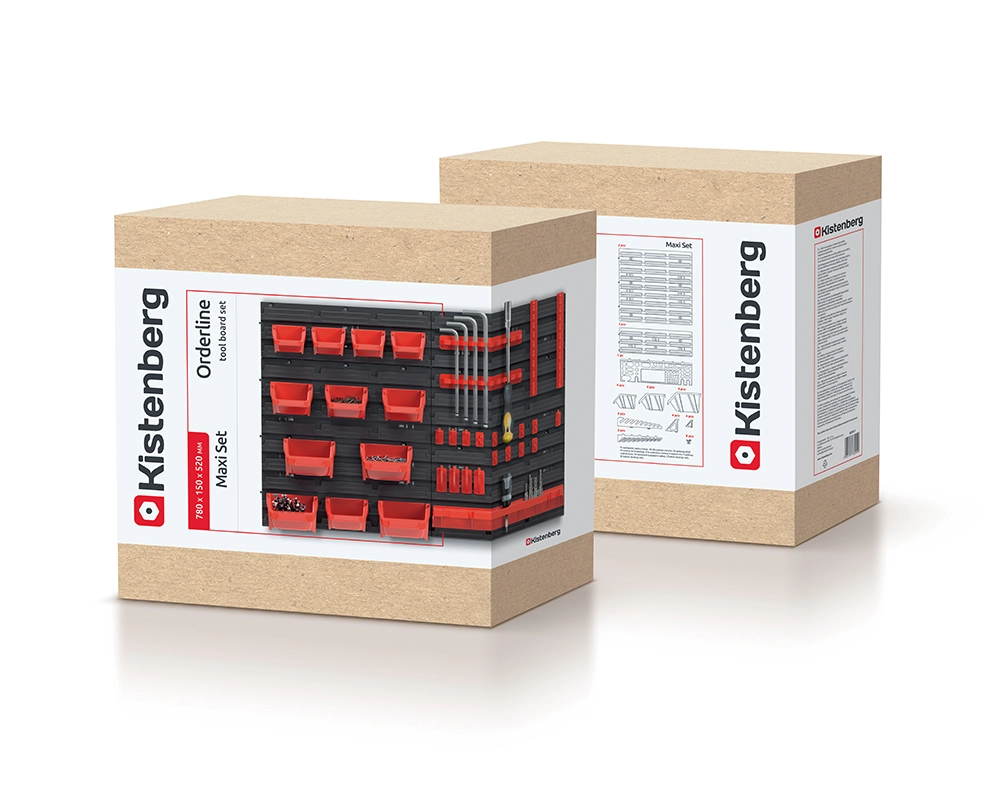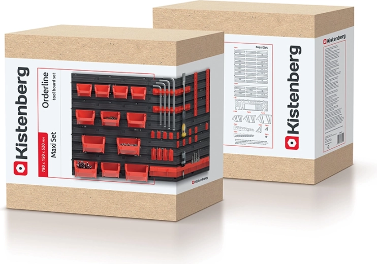 Sættet er designet til nemt at tilpasse sig dine vaner. 12 bokse rummer skruer, rawlplugs og små komponenter, BINEER‑kroge holder tænger, skruetrækkere eller nøgler, og BINNER‑hylden er ideel til ofte anvendte værktøjer eller hjælpemidler. Takket være de kompakte mål 78 × 15 × 52 cm finder panelet plads selv i mindre rum.