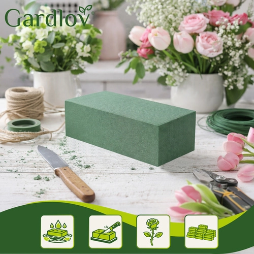 Skab stabile blomsterdekorationer, der forbliver smukke i længere tid. Det våde floralskum GARDLOV, korrekt gennemvædet i vand, hydrere gradvist friske blomster og fikserer stilke i præcist valgt vinkel. Målet 23 × 11 × 8 cm passer i almindelige beholdere og kan nemt tilpasses med en kniv.