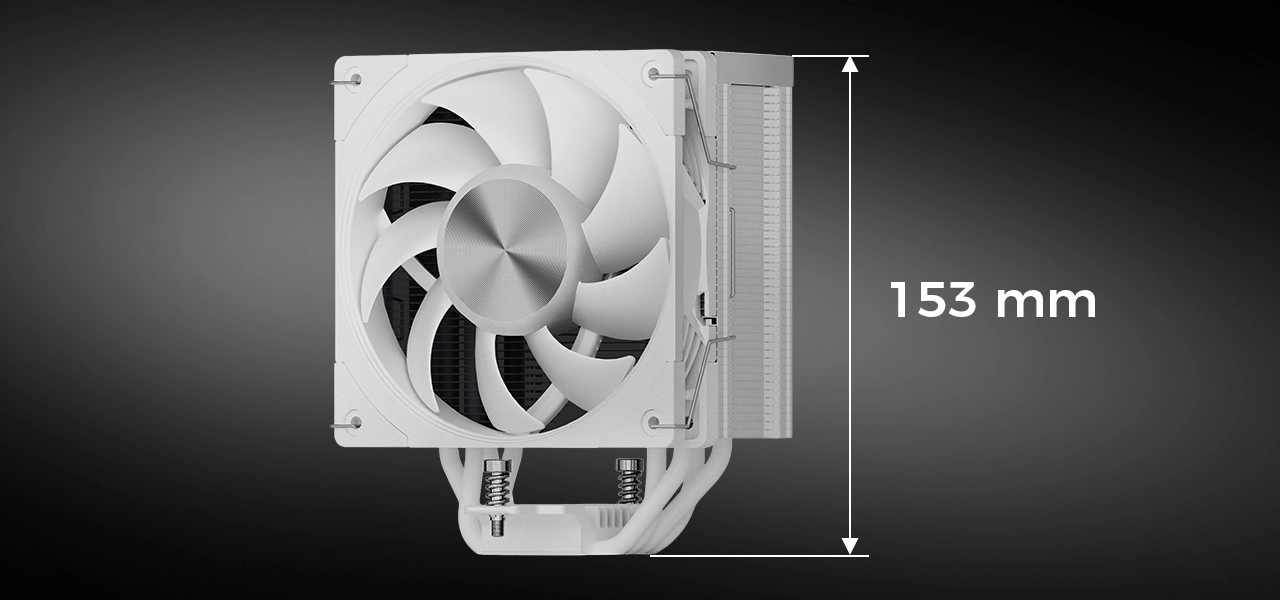Klar til montering. En perfekt poleret bundplade sikrer bedst mulig kontakt med pastaen og CPU’ens IHS for maksimal varmeoverførsel. I pakken finder du også termisk pasta til præcis og nem påføring. Takket være højden på 153 mm er køleren kompatibel med de fleste ATX-kabinetter og bundkort.