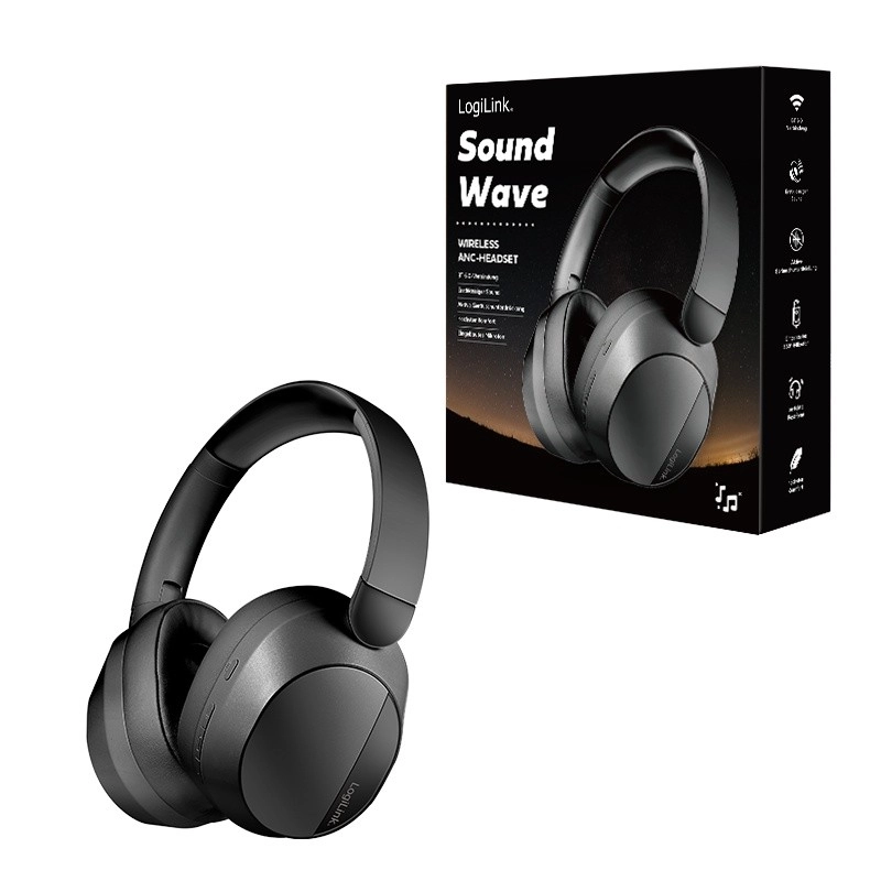 Trådløse LOGILINK-hovedtelefoner med mikrofon, ANC og Bluetooth