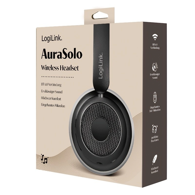 Nyd friheden ved lytning med trådløse hovedtelefoner LOGILINK AuraSolo, som kombinerer Bluetooth 6.0, aktiv støjreduktion (ANC), behagelig pasform og op til 20 timers batteritid. Den integrerede mikrofon sikrer klare opkald, multifunktionstaster gør betjeningen nem, og der er også en 3,5 mm lydport til kablet lytning.