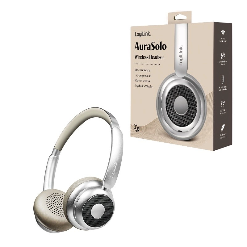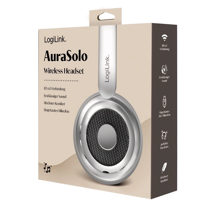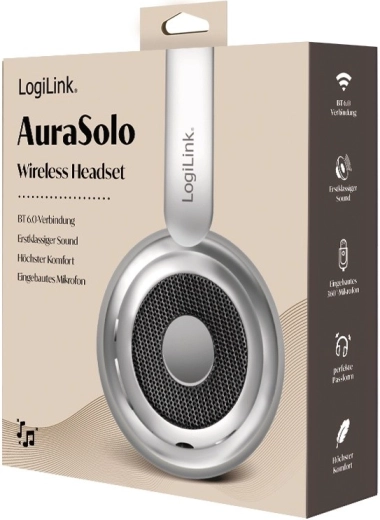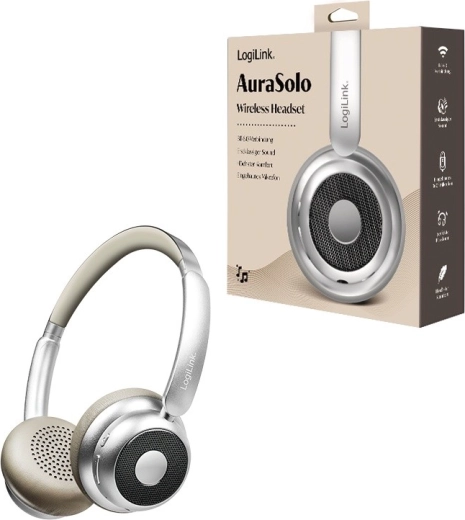 LOGILINK AuraSolo forener et elegant sølvdesign med praktiske funktioner til arbejde, rejser og afslapning. Med Bluetooth 6.0 får du en pålidelig trådløs forbindelse, og når det er nødvendigt, kan du også tilslutte et 3,5 mm lydkabel. Aktiv støjreduktion (ANC) hjælper dig med at fokusere på musik eller arbejde selv i støjende omgivelser.