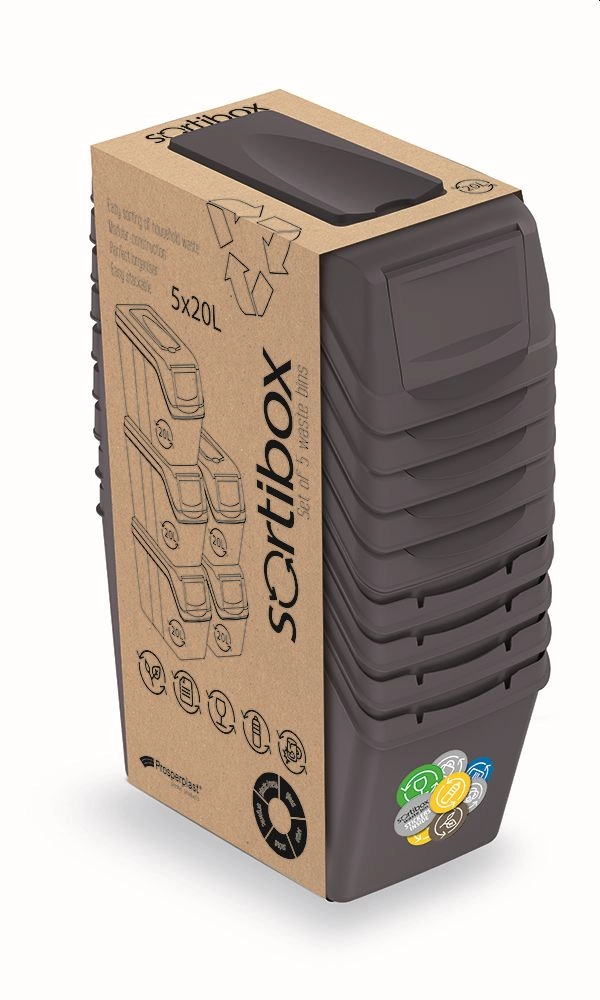 SORTIBOX er en smart løsning til daglig affaldssortering. De kompakte spande med praktiske låg kan nemt stables oven på hinanden, kombineres i kolonner og rækker og derved skabe en overskuelig sorteringsstation, præcis efter dine behov. Det antracitfarvede design virker rent og diskret i køkken, viktualierum eller på kontoret.