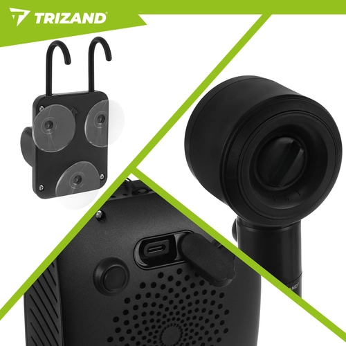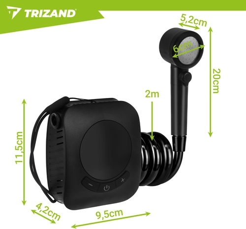 Nyd et varmt og forfriskende brusebad hvor som helst. Denne rejsebruser fra TRIZAND kombinerer mobilitet, ydeevne og enkel betjening. Takket være det stærke batteri med op til 180 minutters drift og trinløs trykregulering får du komfortabel vask uden adgang til fast vandtilslutning.